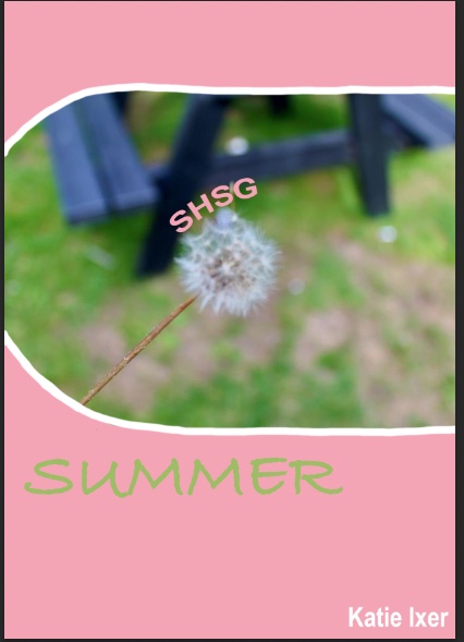 First I made my background colour using the paint bucket tool then I added a photo and transformed it to scale. I then used the magic eraser tool to blend the photo into the background by rounding off the edges. I added a white boarder around the edges using the paint tool to make the photo stand out. I added three text boxes and used the different colours already on the page to tie these text boxes in. The green text ties in with the grass in the photo, the white text ties in with the name at the bottom and the pink text ties in with the background colour. I added an effect to the "SHSG" text box so that it framed the dandelion and I changed the fonts so that they fit in nicely with the theme of the photo.